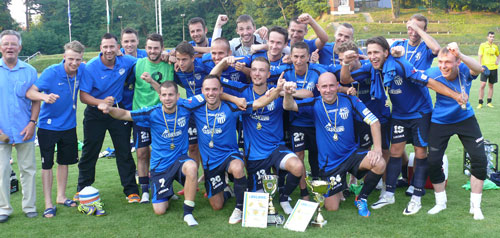 Unter dem Jubel seiner mit Goldmedaillen geschmückten Mannschaftskameraden reckte Mannschaftskapitän Stajner am Ende einer kräftezehrenden Partie den Oberlausitzpokal in die Höhe. Der FCO hatte zuvor bei brütender Hitze Gelb-Weiß Görlitz mit 1:0 bezwungen. Damit gewannen die Oberländer die 10. Auflage, zuletzt siegten sie 2011. |
